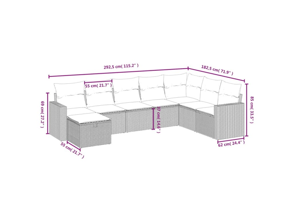 Tato zahradní sedací souprava je dokonalým doplňkem vaší zahrady, terasy nebo dvorku a poskytne vám pohodlné a příjemné místo, kde si můžete povídat s rodinou a přáteli nebo jen tak odpočívat a užívat si pobyt venku.