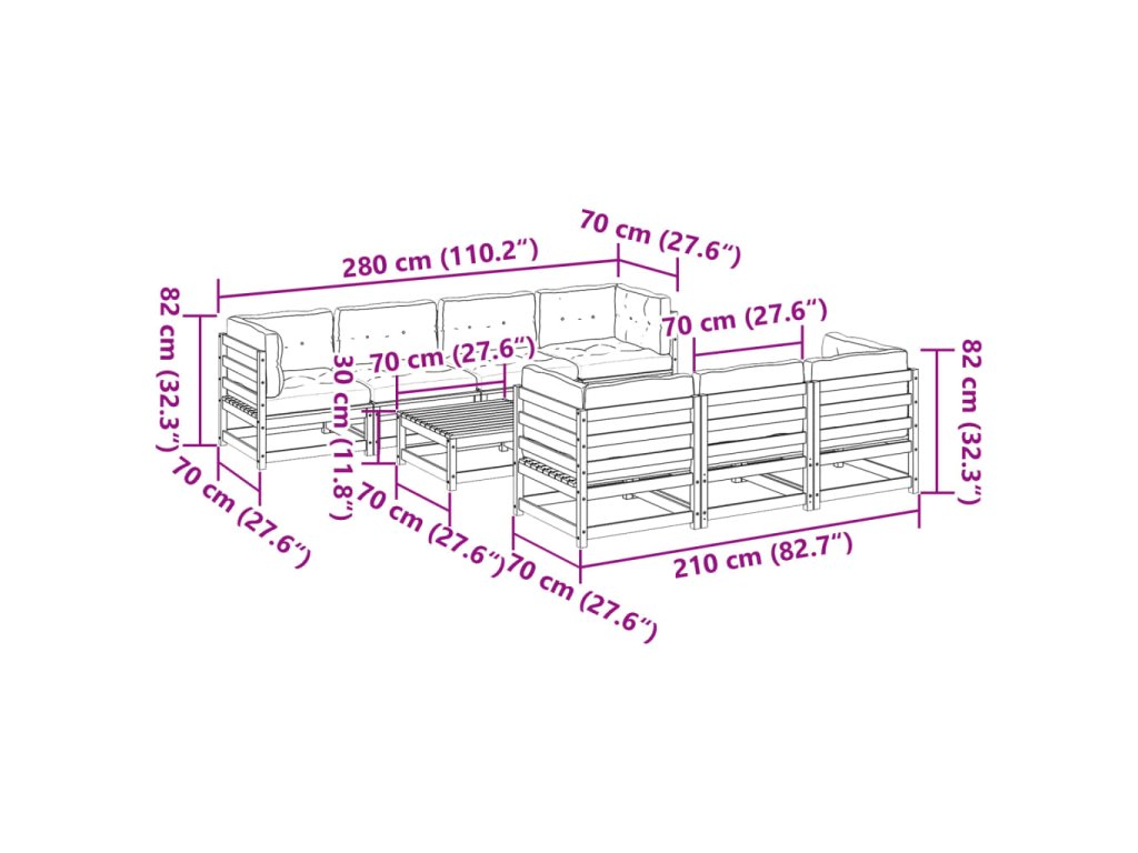 8dílná zahradní sedací souprava s poduškami masivní borovice 3299323