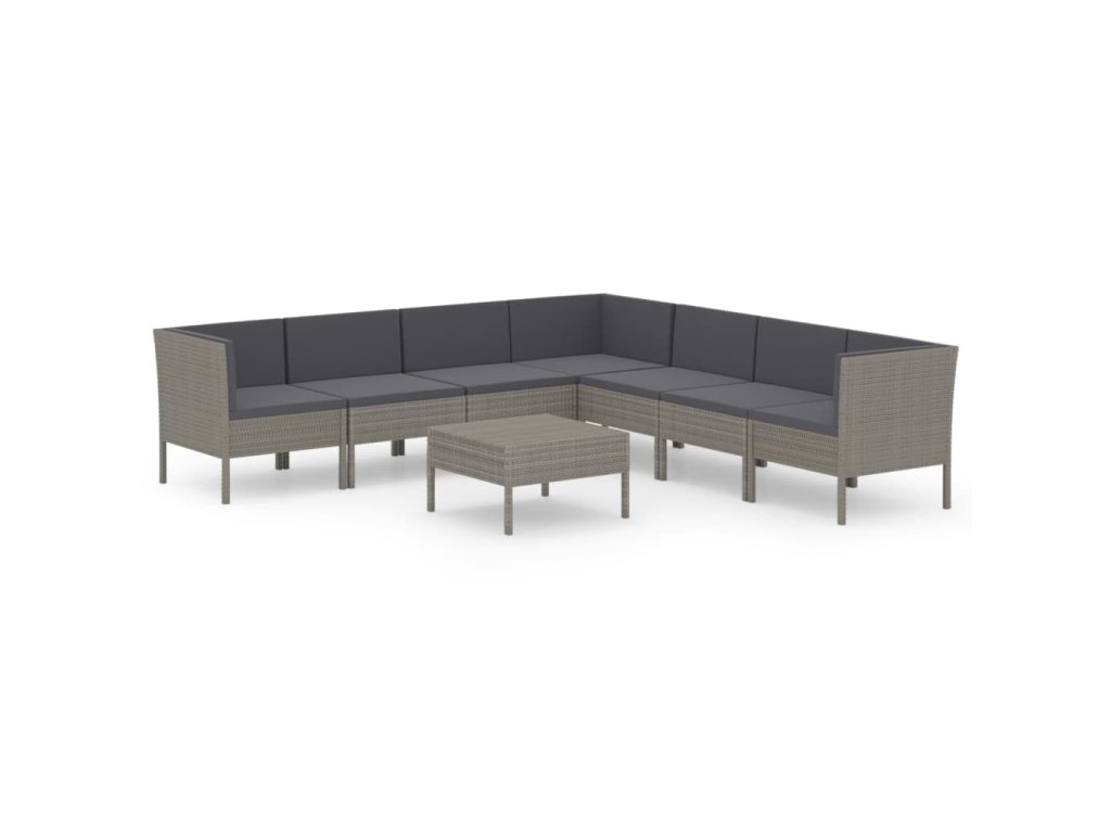 8dílná zahradní sedací souprava s poduškami polyratan šedá 3094458