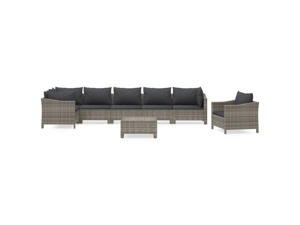 8dílná zahradní sedací souprava s poduškami šedá polyratan 3187285