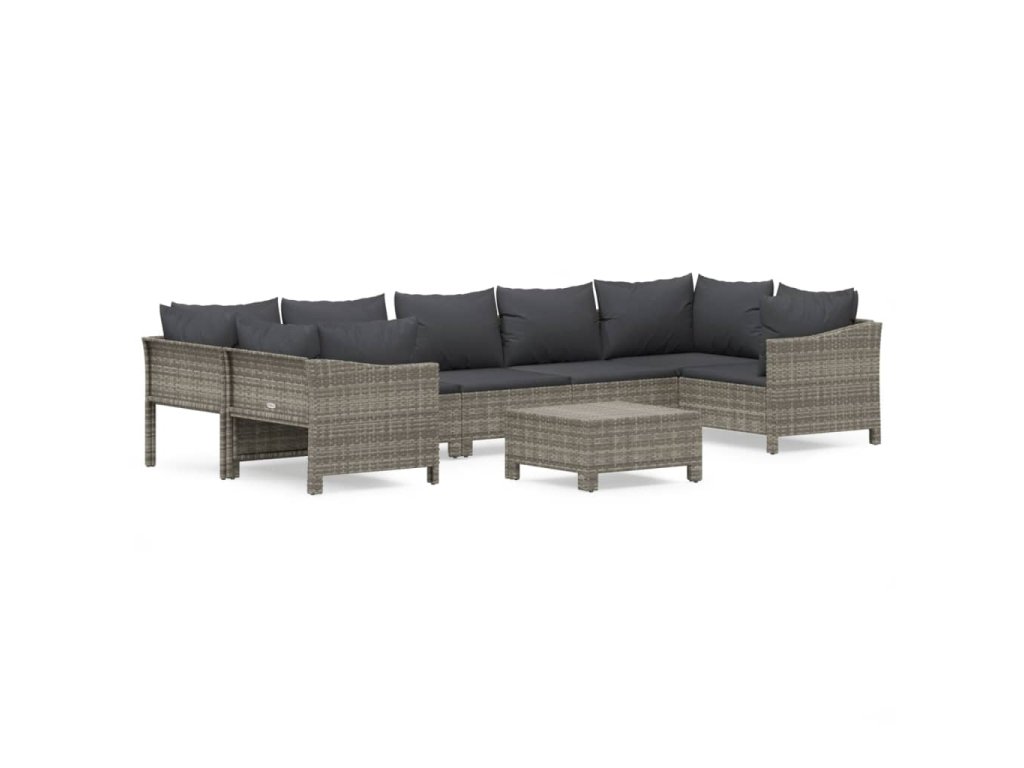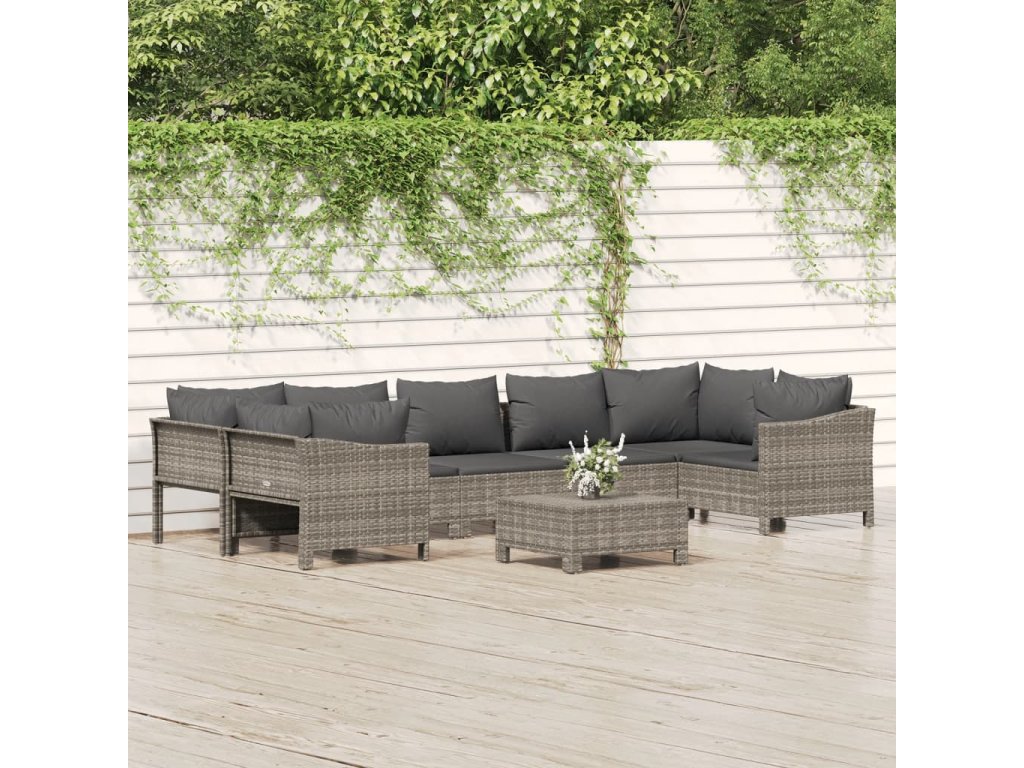 8dílná zahradní sedací souprava s poduškami šedá polyratan 3187303