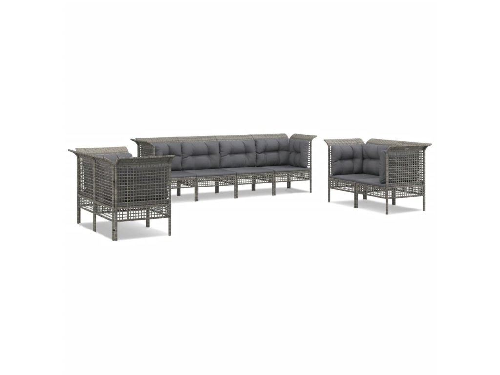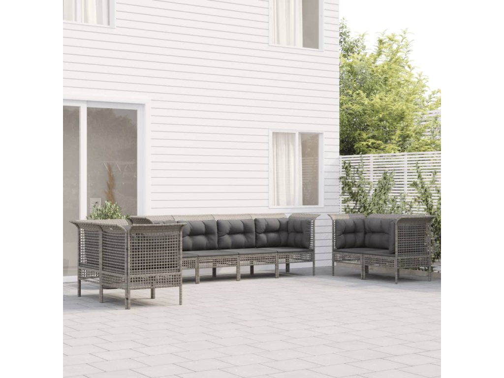 8dílná zahradní sedací souprava s poduškami šedá polyratan 3187493