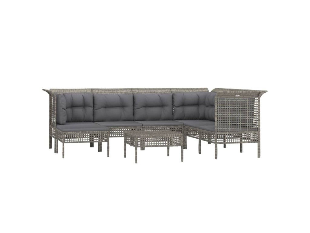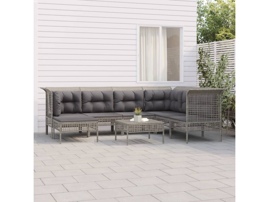 8dílná zahradní sedací souprava s poduškami šedá polyratan 3187559
