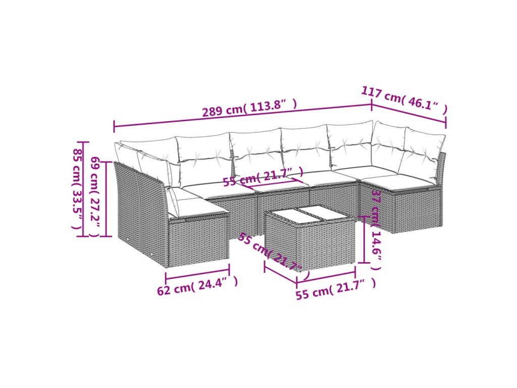 8dílná zahradní sedací souprava s poduškami šedá polyratan 3217440