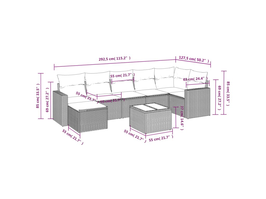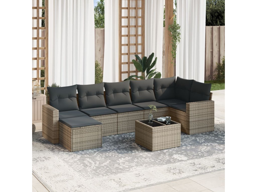 8dílná zahradní sedací souprava s poduškami šedá polyratan 3219280