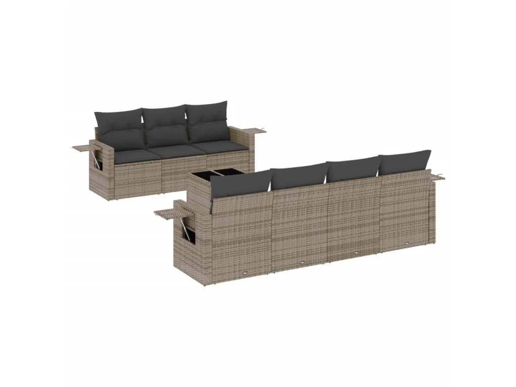 8dílná zahradní sedací souprava s poduškami šedá polyratan 3219929