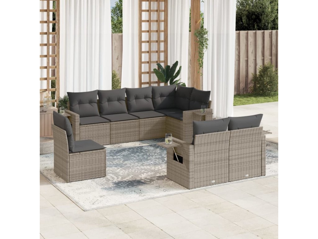 8dílná zahradní sedací souprava s poduškami šedá polyratan 3220439