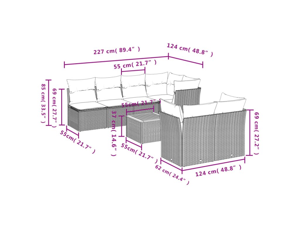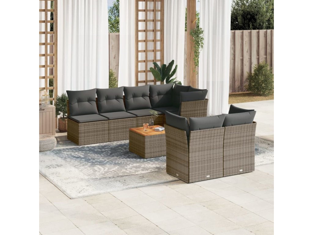 8dílná zahradní sedací souprava s poduškami šedá polyratan 3223519