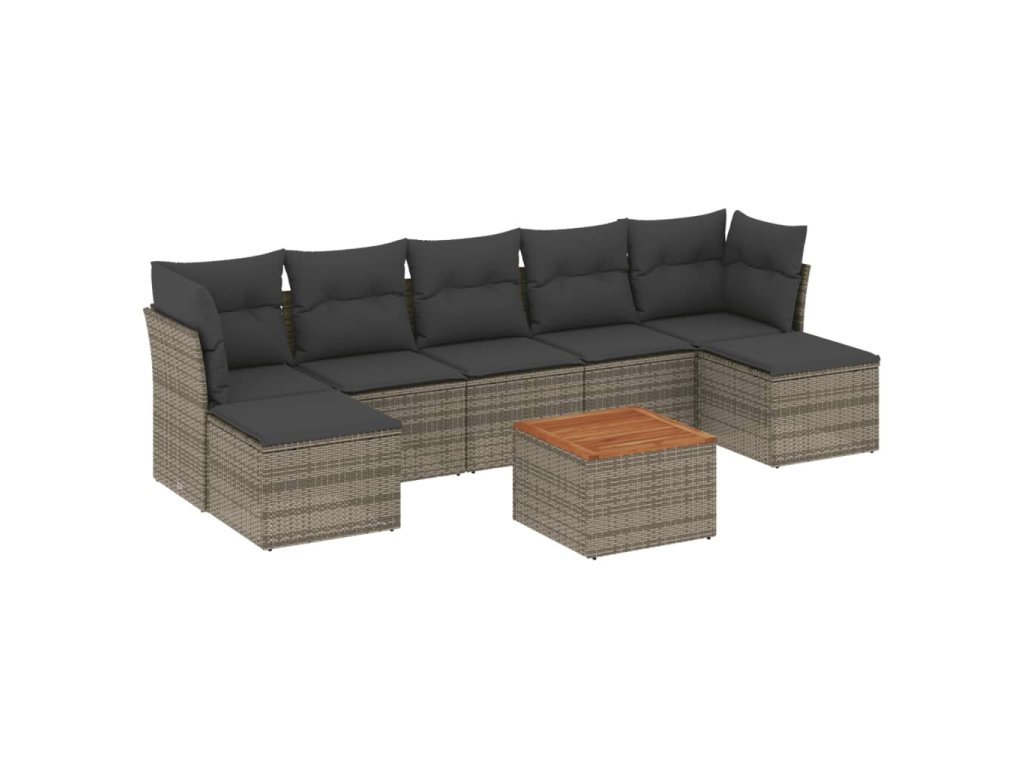 8dílná zahradní sedací souprava s poduškami šedá polyratan 3223778