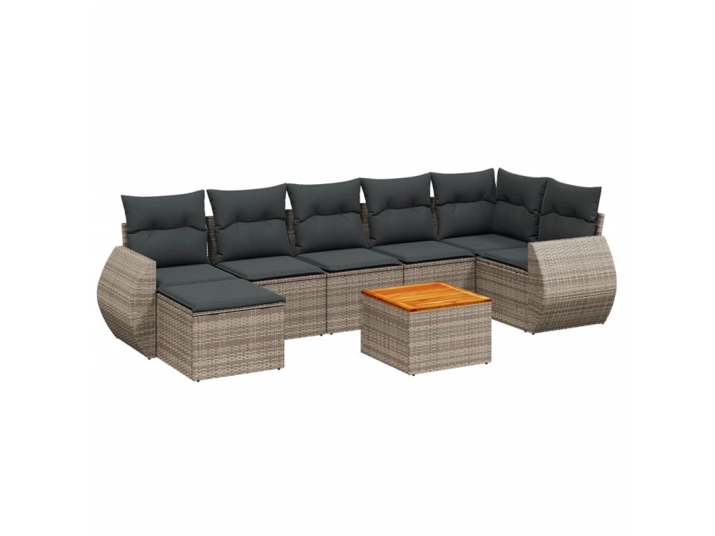 8dílná zahradní sedací souprava s poduškami šedá polyratan 3225115