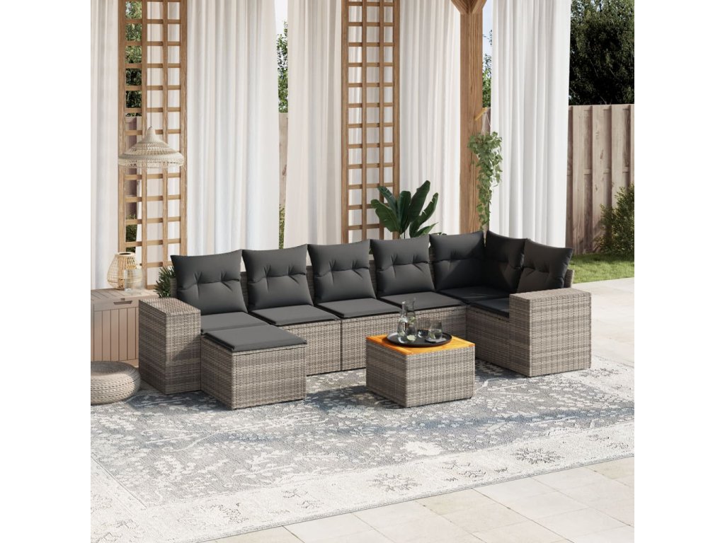 8dílná zahradní sedací souprava s poduškami šedá polyratan 3225556