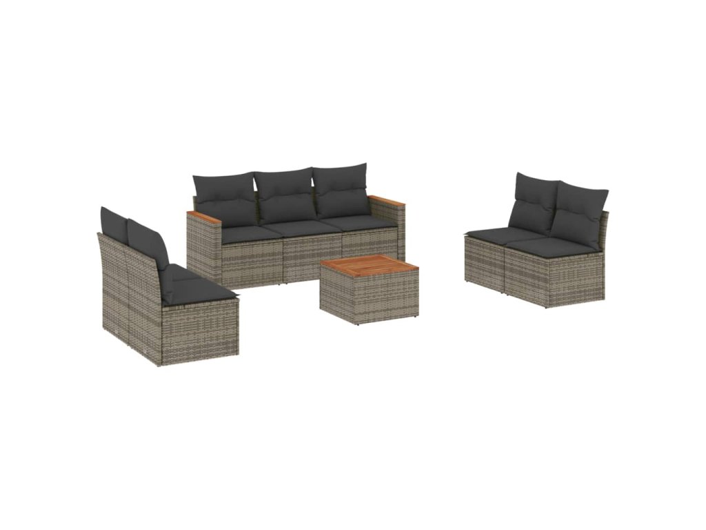 8dílná zahradní sedací souprava s poduškami šedá polyratan 3225885