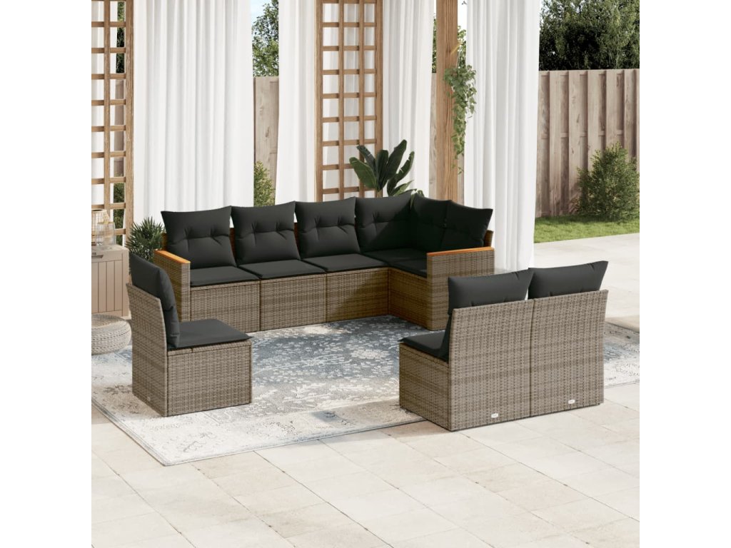 8dílná zahradní sedací souprava s poduškami šedá polyratan 3226046