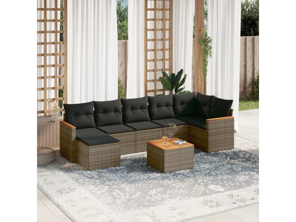 8dílná zahradní sedací souprava s poduškami šedá polyratan 3226200
