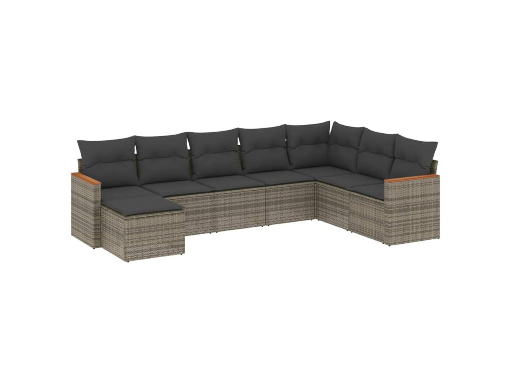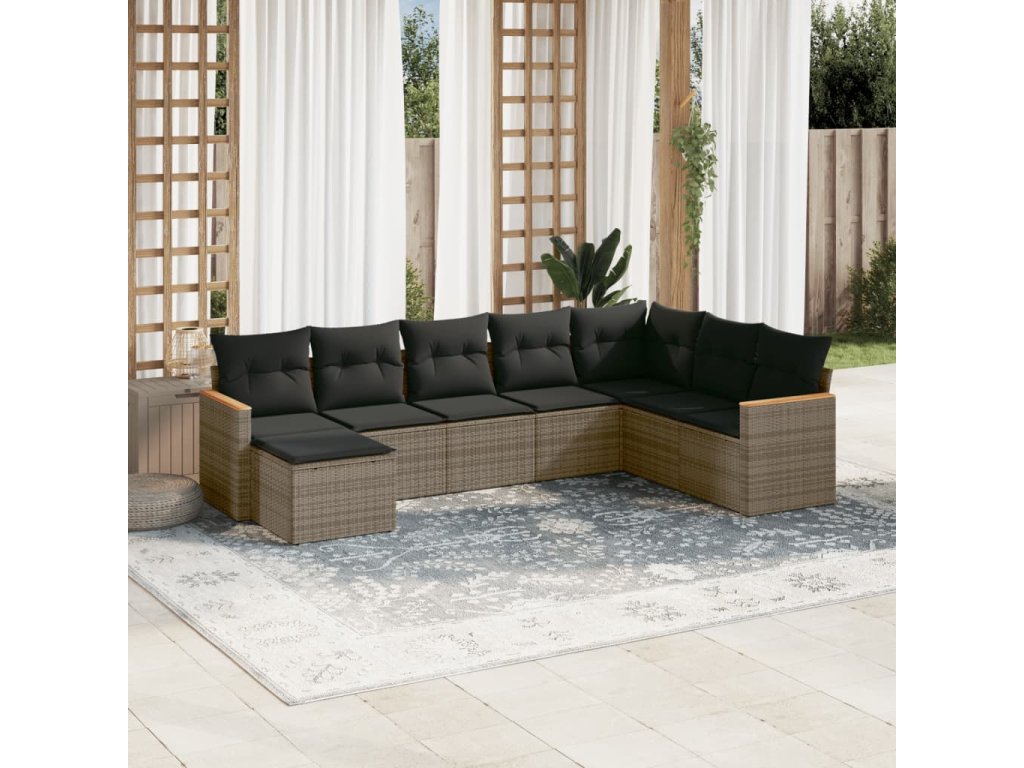 8dílná zahradní sedací souprava s poduškami šedá polyratan 3226249