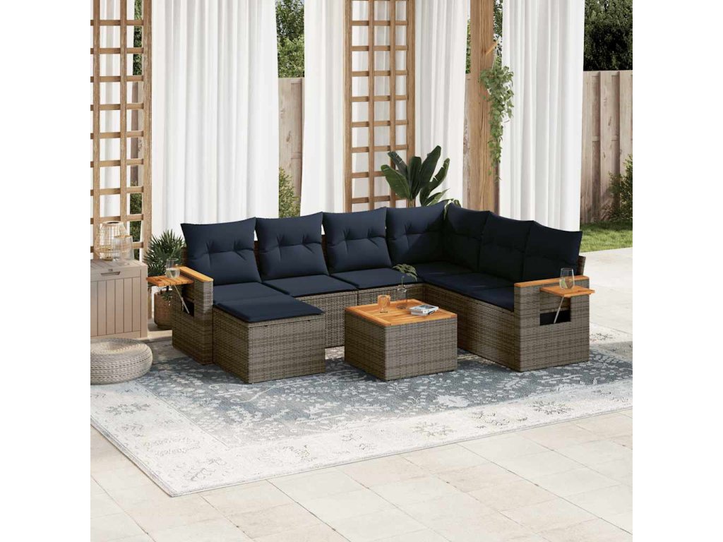 8dílná zahradní sedací souprava s poduškami šedá polyratan 3227055