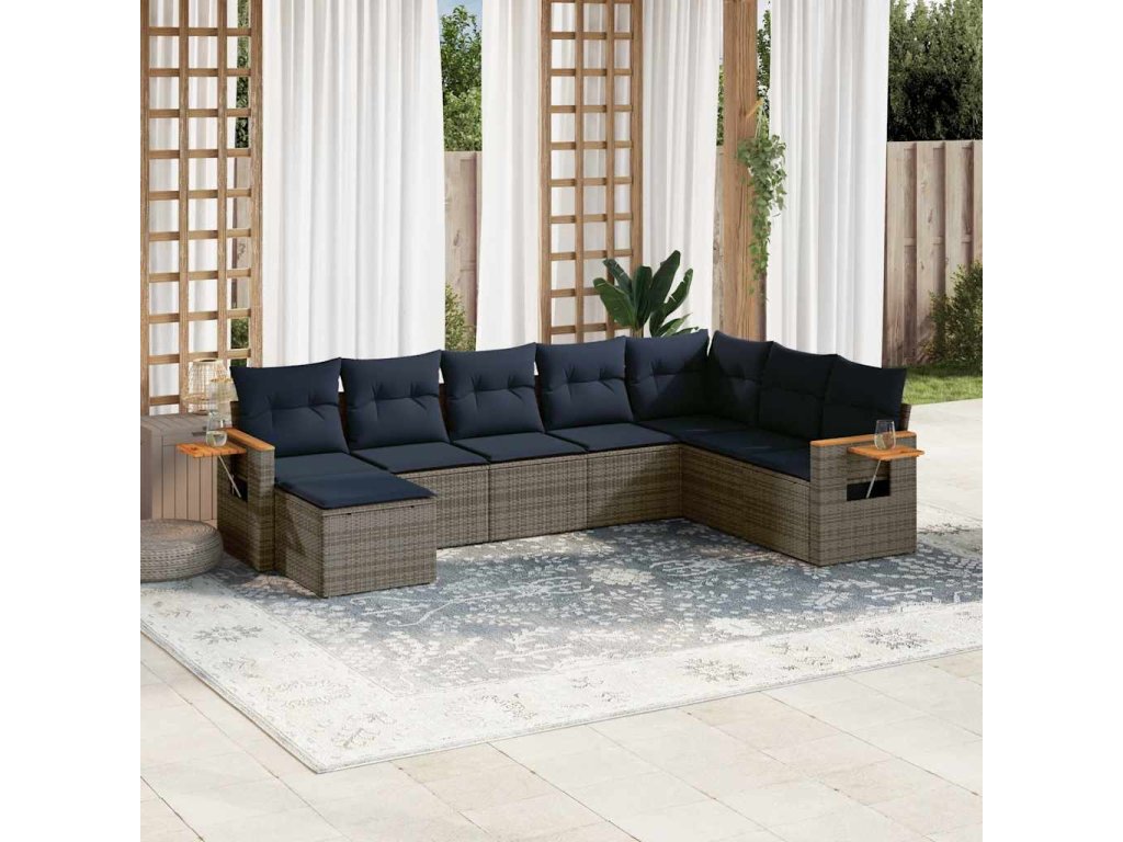 8dílná zahradní sedací souprava s poduškami šedá polyratan 3227090