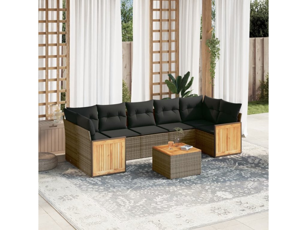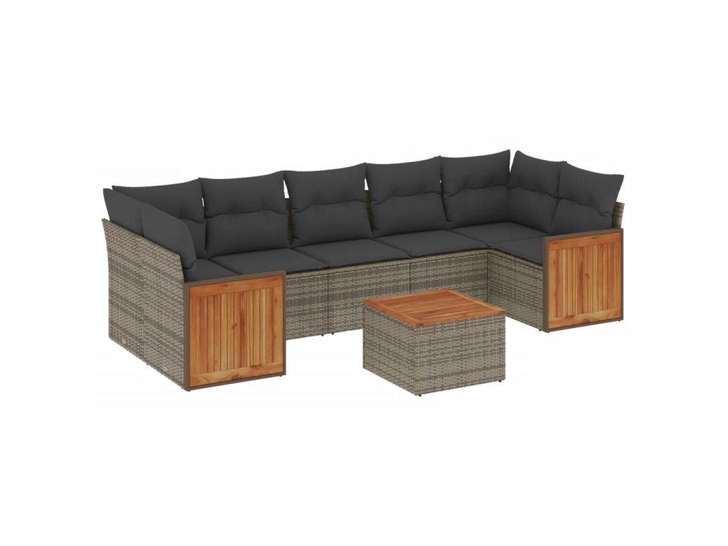 8dílná zahradní sedací souprava s poduškami šedá polyratan 3227495