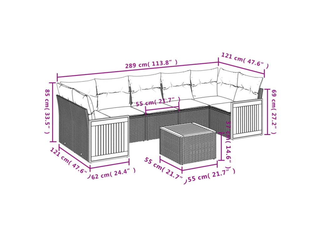 Tato zahradní sedací souprava je dokonalým doplňkem vaší zahrady, terasy nebo dvorku a poskytne vám pohodlné a příjemné místo, kde si můžete povídat s rodinou a přáteli nebo jen tak odpočívat a užívat si pobyt venku.