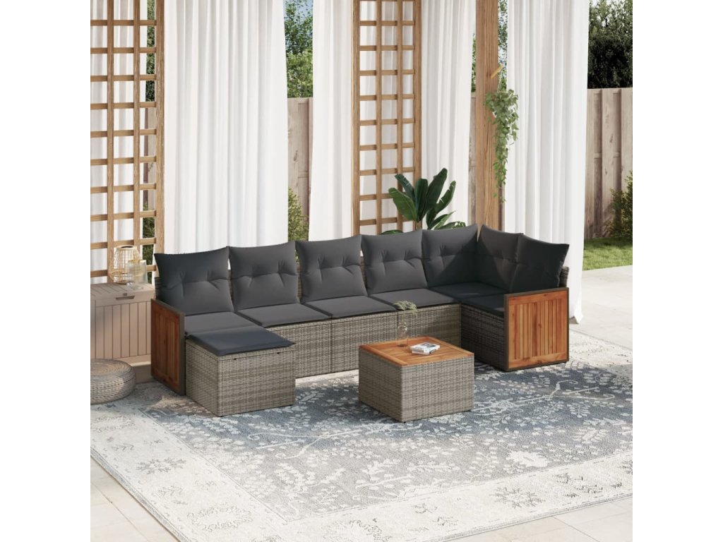 8dílná zahradní sedací souprava s poduškami šedá polyratan 3227880
