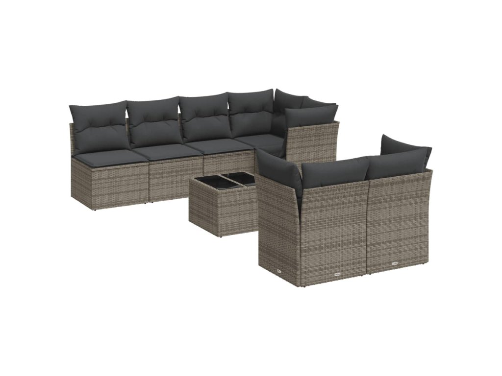 8dílná zahradní sedací souprava s poduškami šedá polyratan 3249139