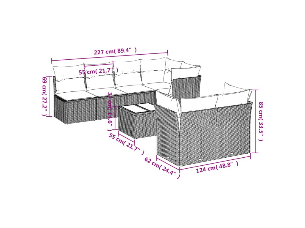 Tato zahradní sedací souprava je dokonalým doplňkem vaší zahrady, terasy nebo dvorku a poskytne vám pohodlné a příjemné místo, kde si můžete povídat s rodinou a přáteli nebo jen tak odpočívat a užívat si pobyt venku.