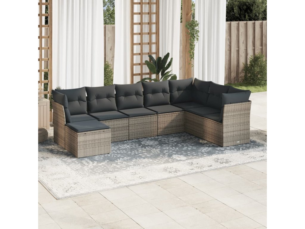 8dílná zahradní sedací souprava s poduškami šedá polyratan 3249889