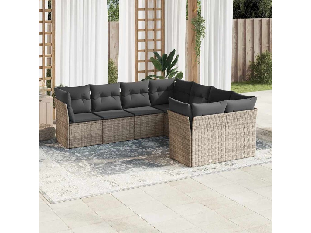 8dílná zahradní sedací souprava s poduškami šedá polyratan 3250429