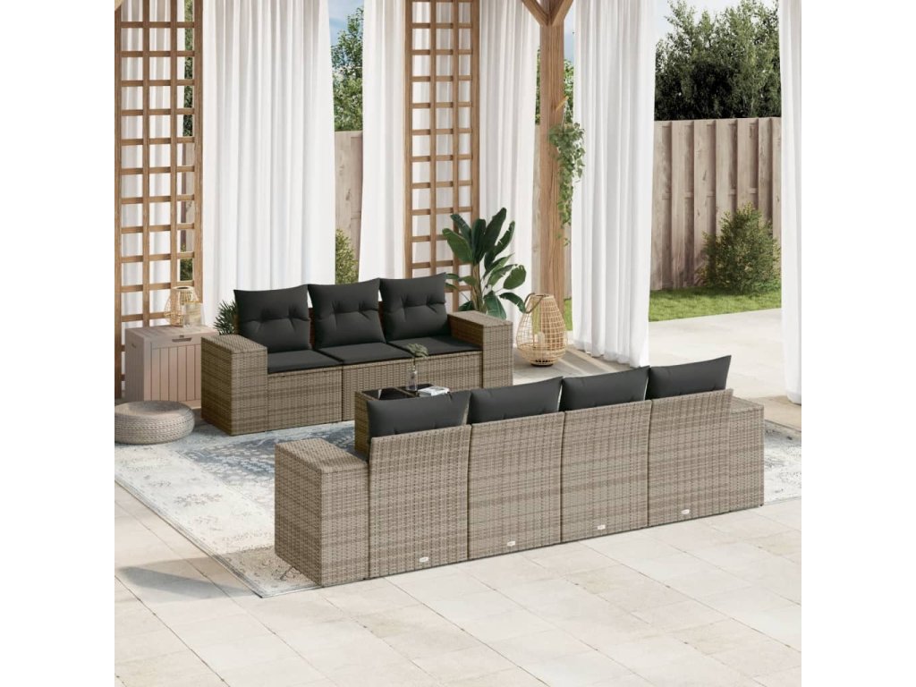 8dílná zahradní sedací souprava s poduškami šedá polyratan 3254667
