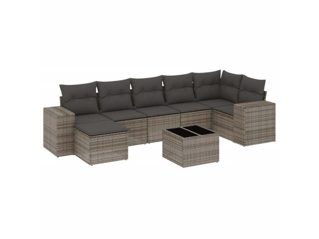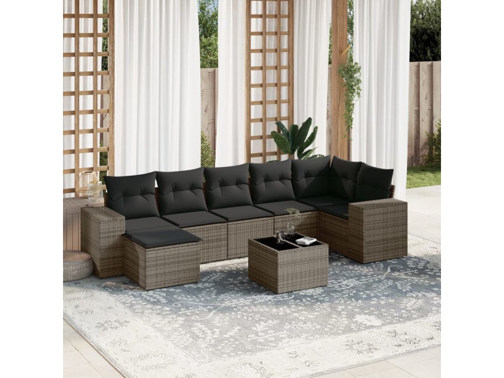 8dílná zahradní sedací souprava s poduškami šedá polyratan 3255227