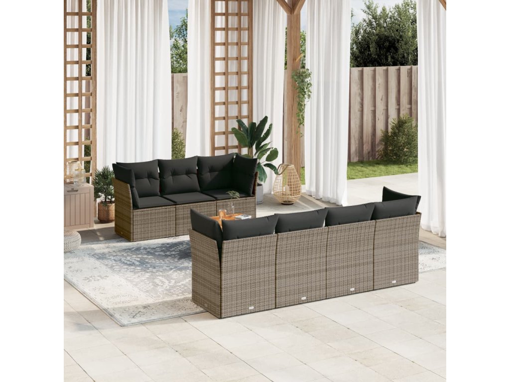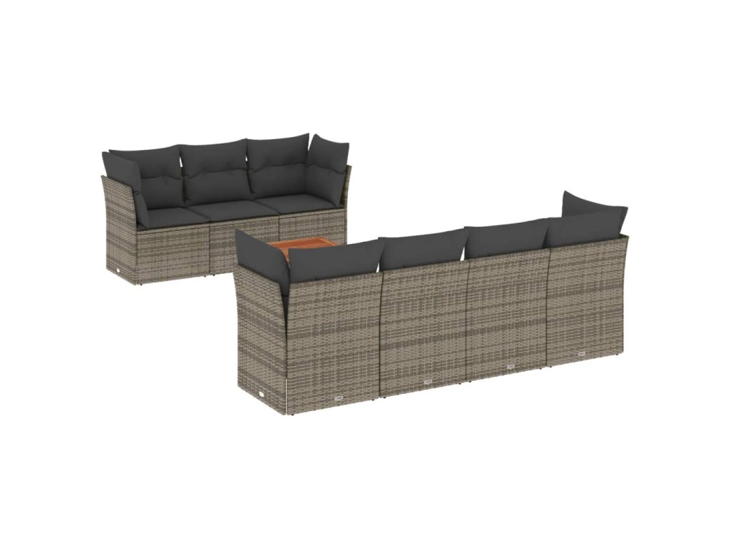8dílná zahradní sedací souprava s poduškami šedá polyratan 3255836