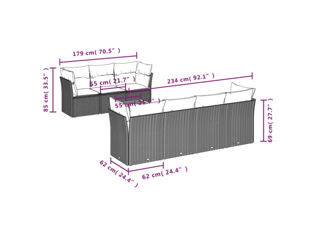 Tato zahradní sedací souprava je dokonalým doplňkem vaší zahrady, terasy nebo dvorku a poskytne vám pohodlné a příjemné místo, kde si můžete povídat s rodinou a přáteli nebo jen tak odpočívat a užívat si pobyt venku.