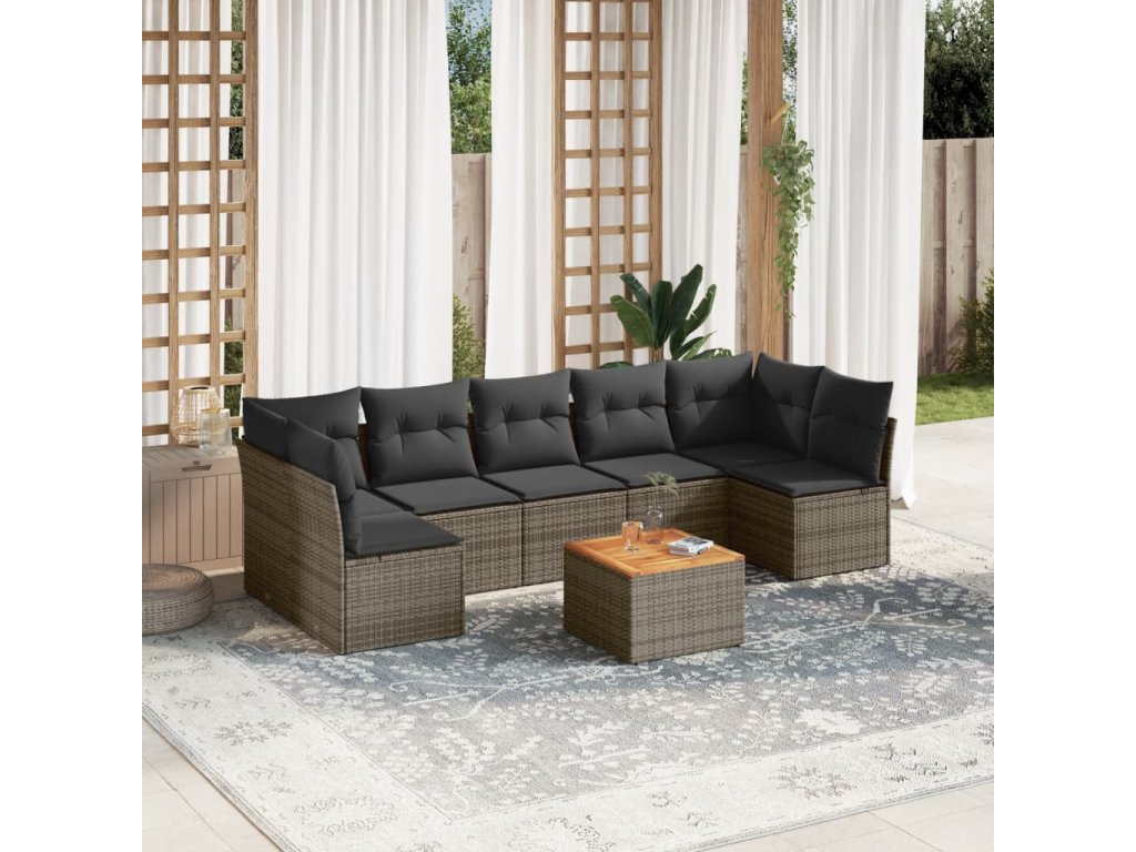 8dílná zahradní sedací souprava s poduškami šedá polyratan 3255906