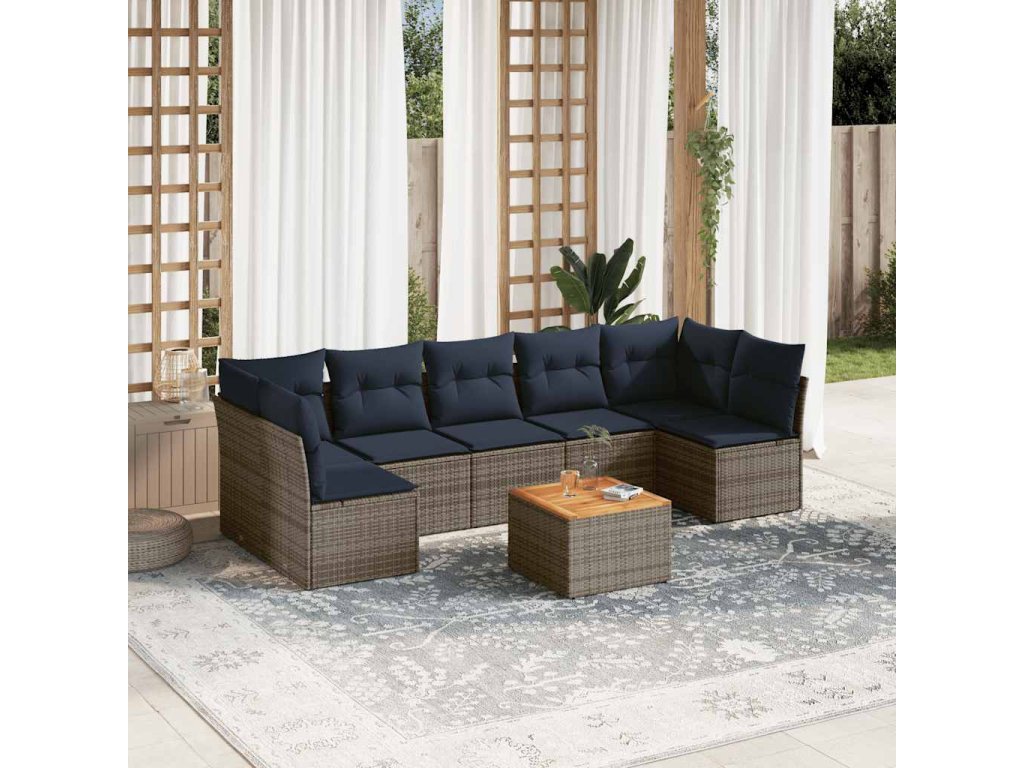 8dílná zahradní sedací souprava s poduškami šedá polyratan 3255907