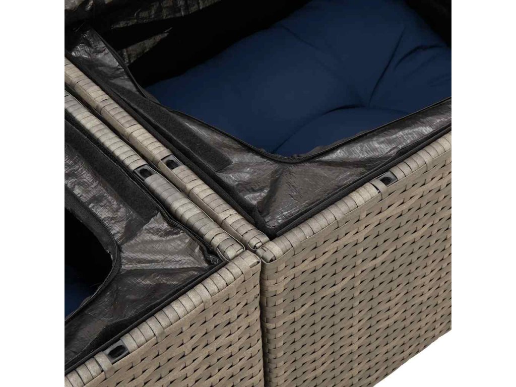 - Úložný prostor s voděodolným vakem: Každý zahradní sedací díl má úložný prostor pod sedákem, který je opatřen voděodolnou vložkou a poslouží vám k ukládání podušek, hraček a dalších věcí. Vnitřní vaky mají horní kryt a lze je bezpečně připevnit k sedákům pomocí suchého zipu, což zaručí větší stabilitu.