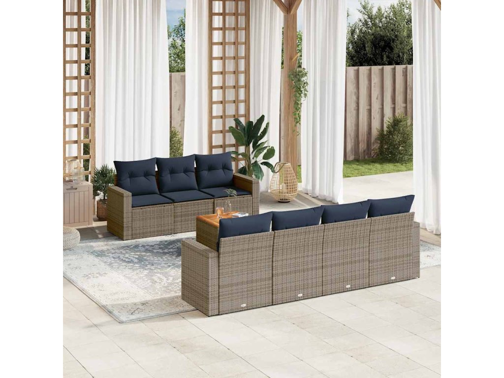 8dílná zahradní sedací souprava s poduškami šedá polyratan 3256362