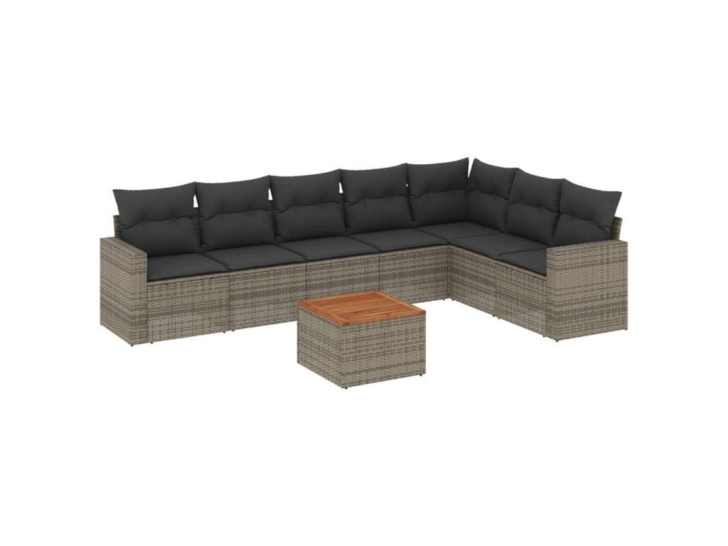 8dílná zahradní sedací souprava s poduškami šedá polyratan 3256487