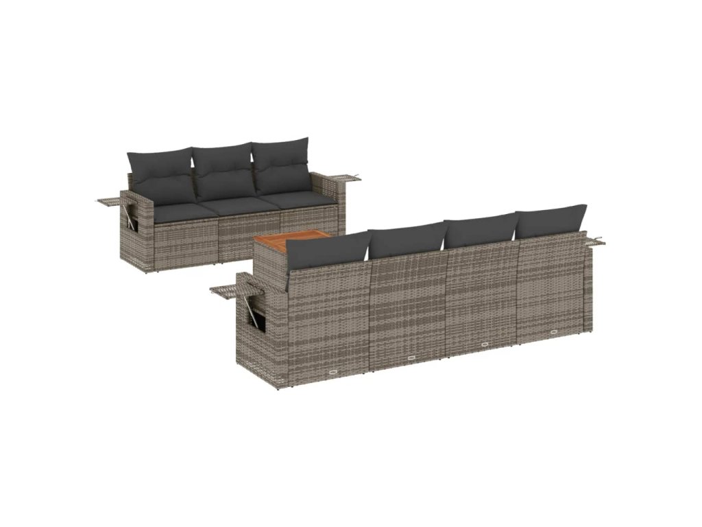 8dílná zahradní sedací souprava s poduškami šedá polyratan 3256802