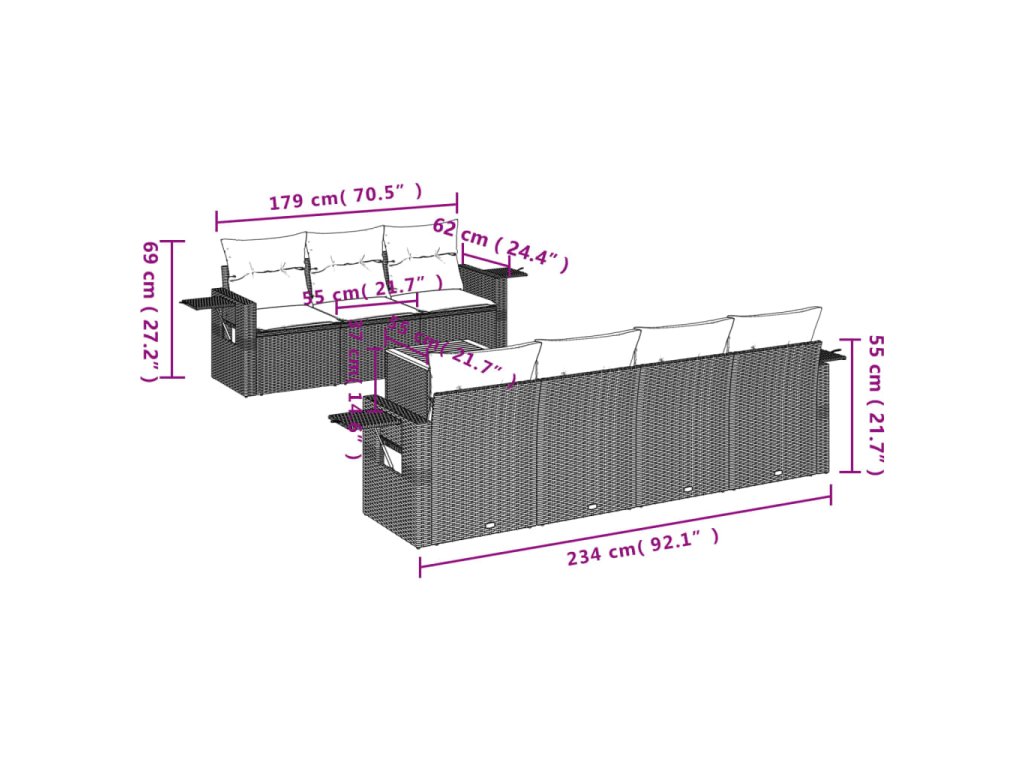 Tato zahradní sedací souprava je dokonalým doplňkem vaší zahrady, terasy nebo dvorku a poskytne vám pohodlné a příjemné místo, kde si můžete povídat s rodinou a přáteli nebo jen tak odpočívat a užívat si pobyt venku.