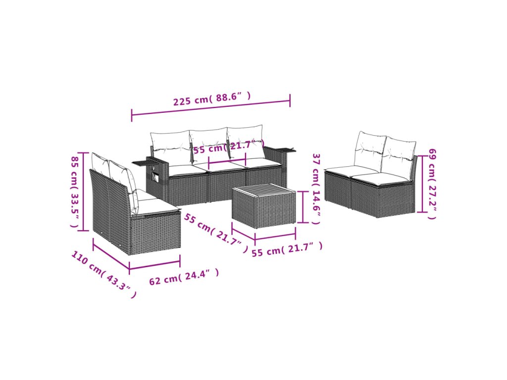 8dílná zahradní sedací souprava s poduškami šedá polyratan 3256851