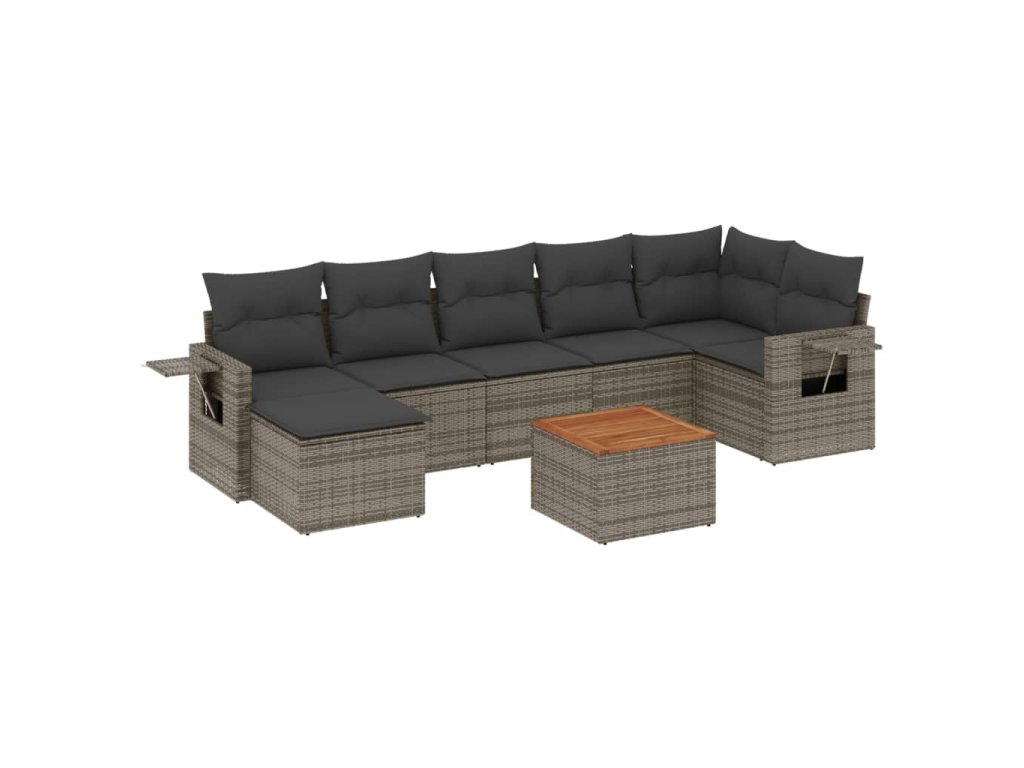 8dílná zahradní sedací souprava s poduškami šedá polyratan 3257005
