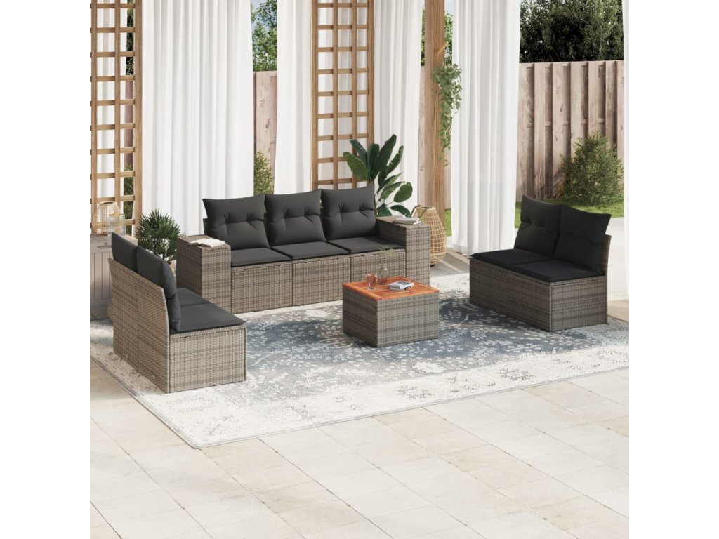 8dílná zahradní sedací souprava s poduškami šedá polyratan 3257733