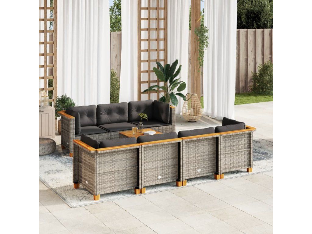 8dílná zahradní sedací souprava s poduškami šedá polyratan 3261750