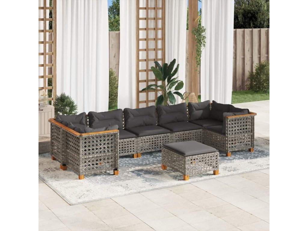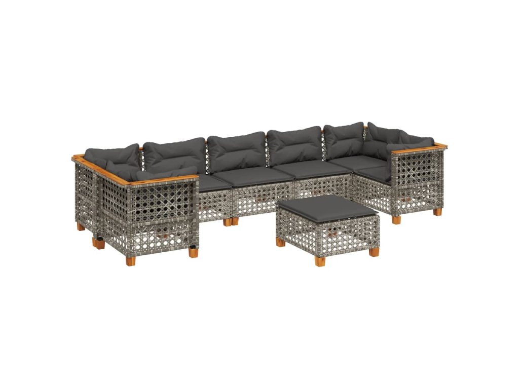 8dílná zahradní sedací souprava s poduškami šedá polyratan 3261765