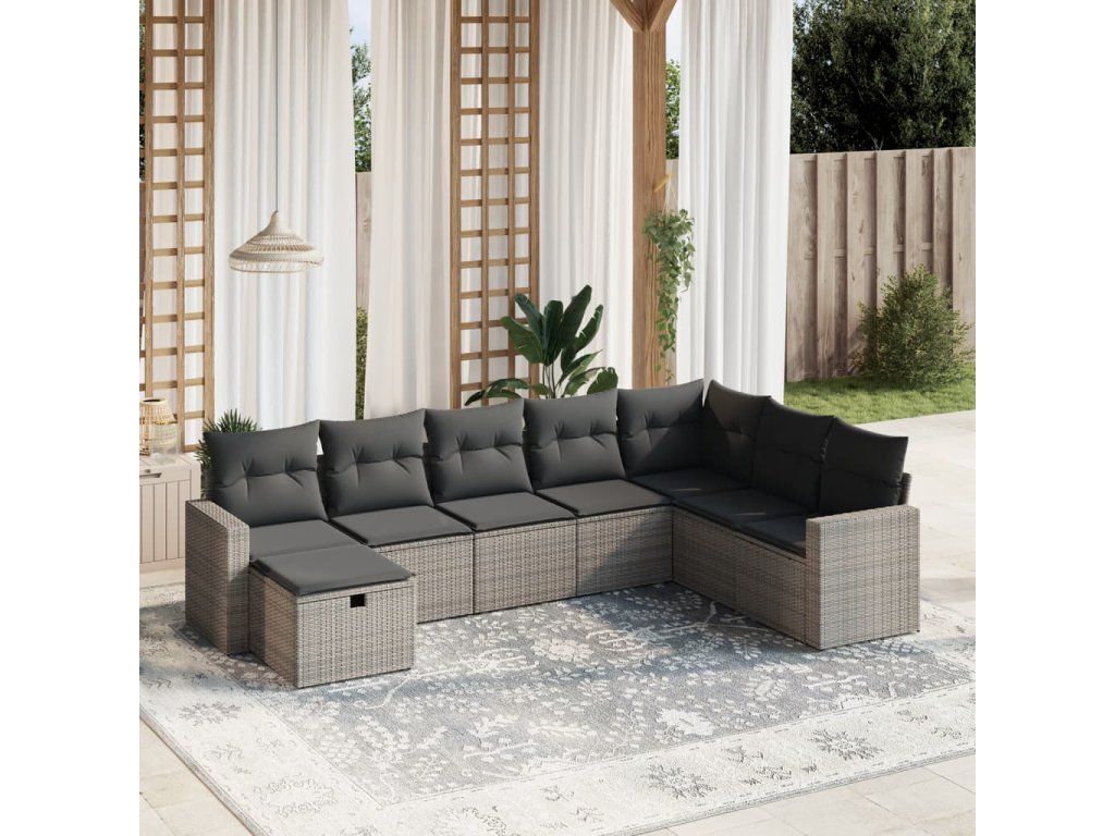 8dílná zahradní sedací souprava s poduškami šedá polyratan 3263586