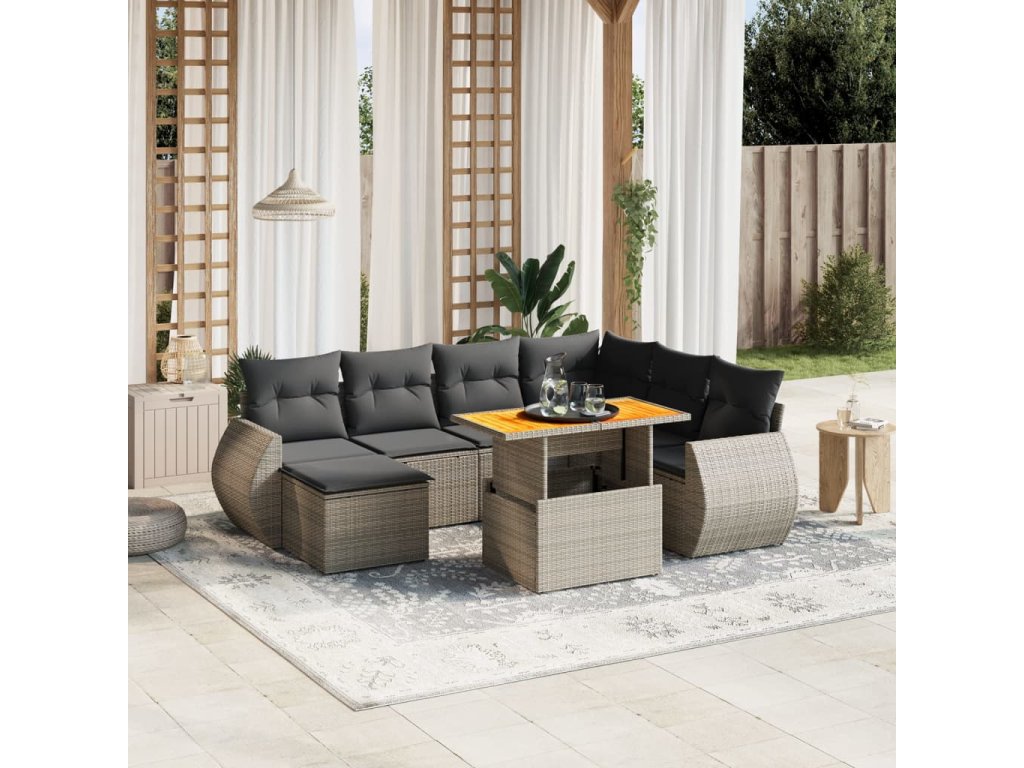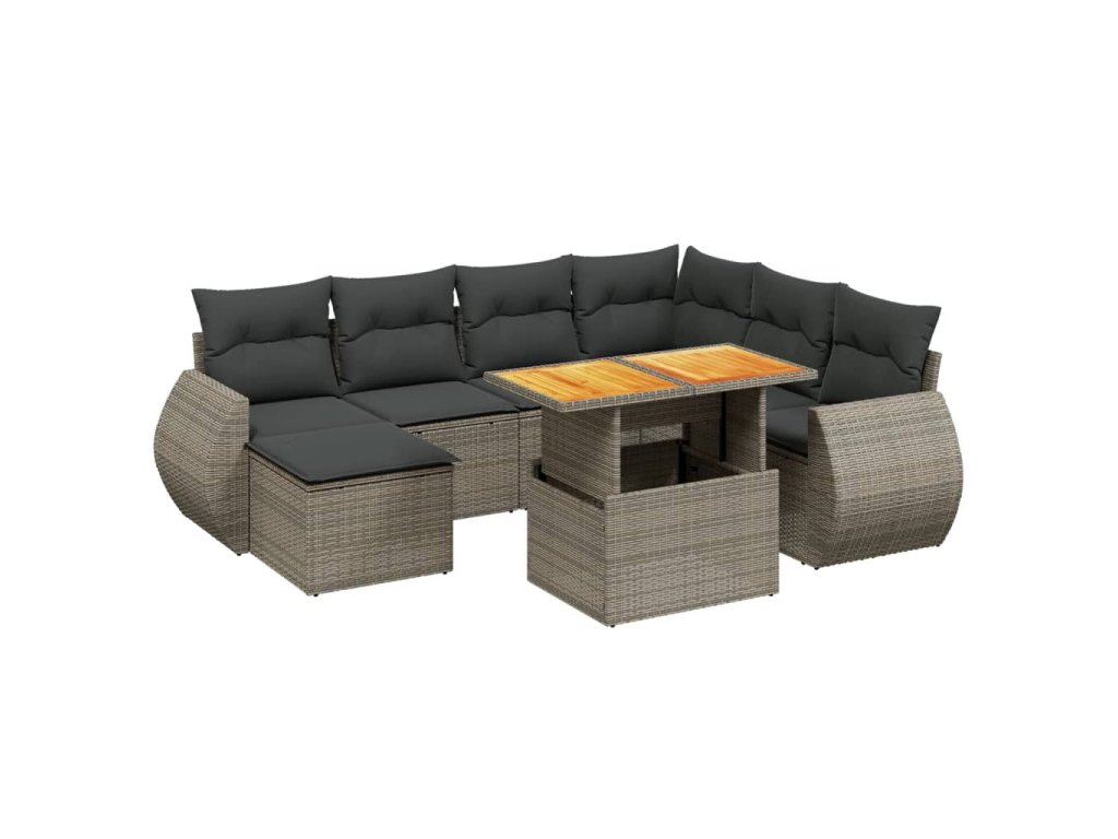 8dílná zahradní sedací souprava s poduškami šedá polyratan 3272313