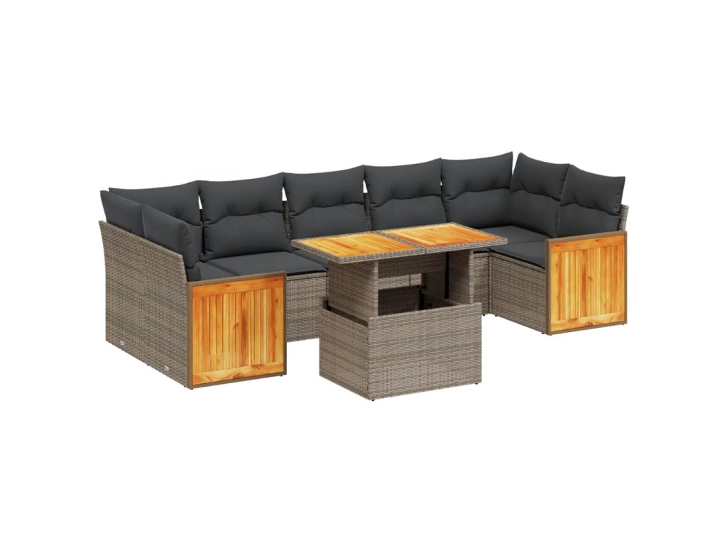 8dílná zahradní sedací souprava s poduškami šedá polyratan 3273874