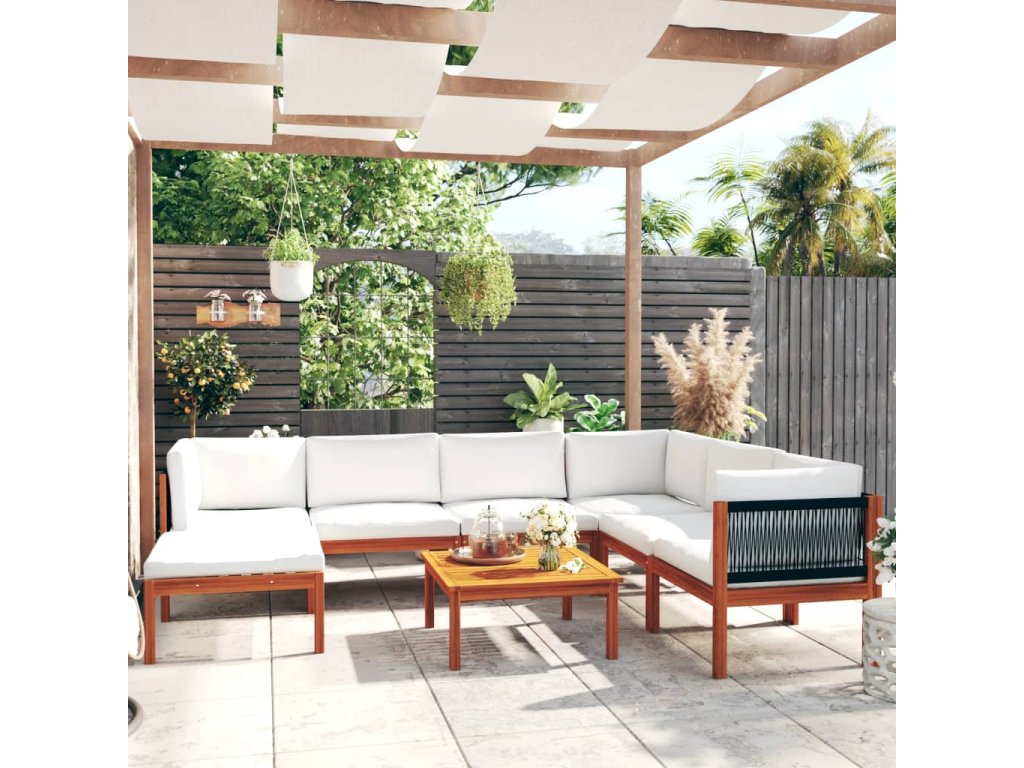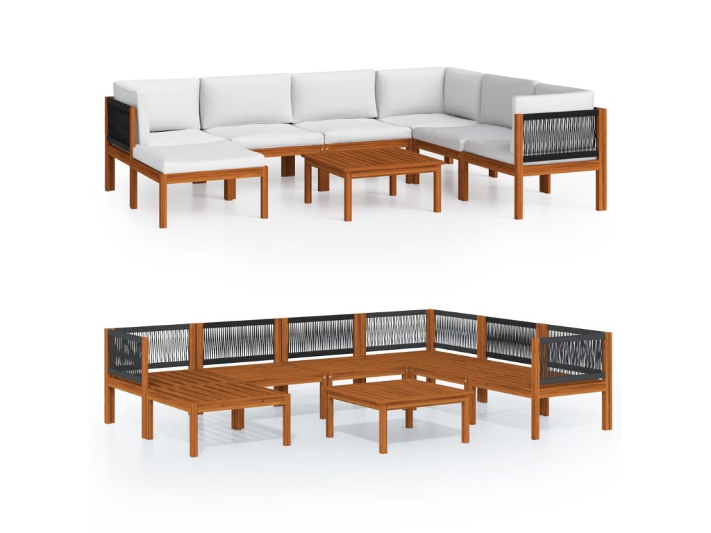 8dílná zahradní sedací souprava s polštáři krémové dřevo akácie a provaz 3057891