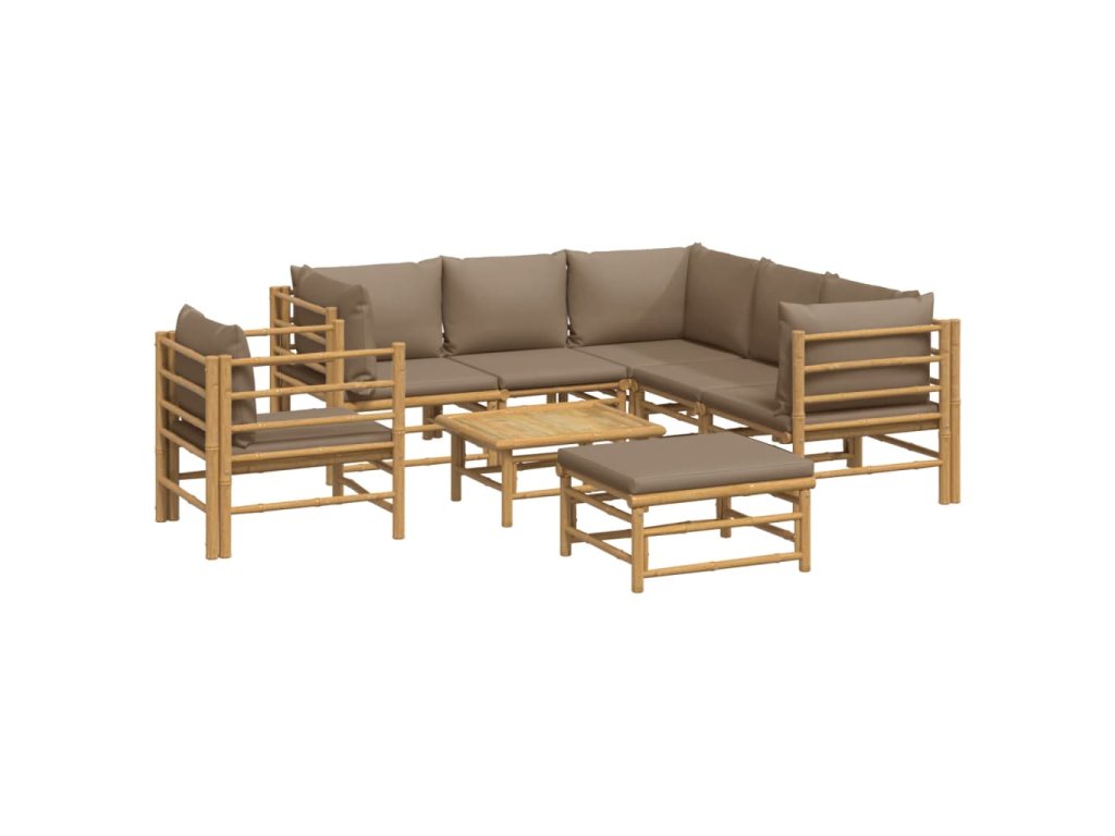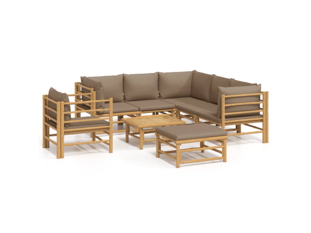 8dílná zahradní sedací souprava s taupe poduškami bambus 3155126