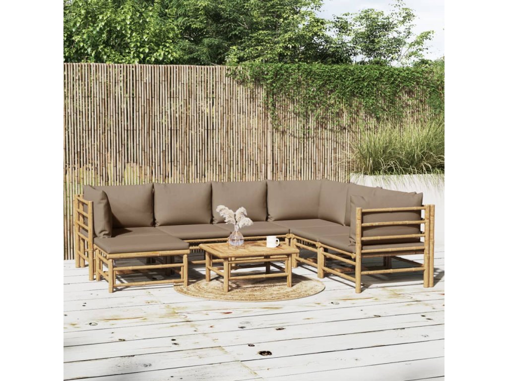 8dílná zahradní sedací souprava s taupe poduškami bambus 3155127
